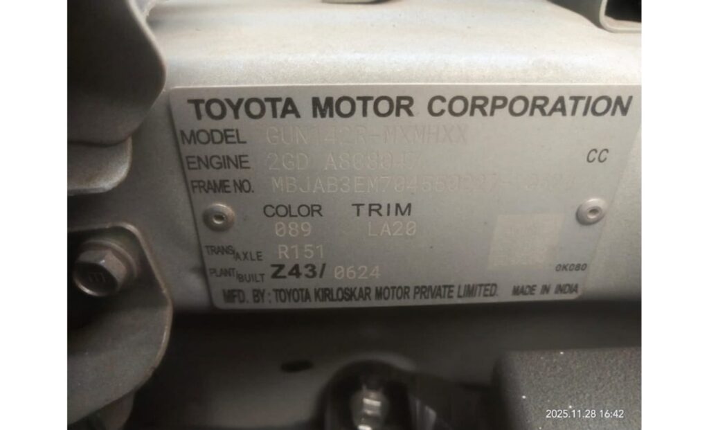 * Make & Model : TOYOTA FORTUNER AT